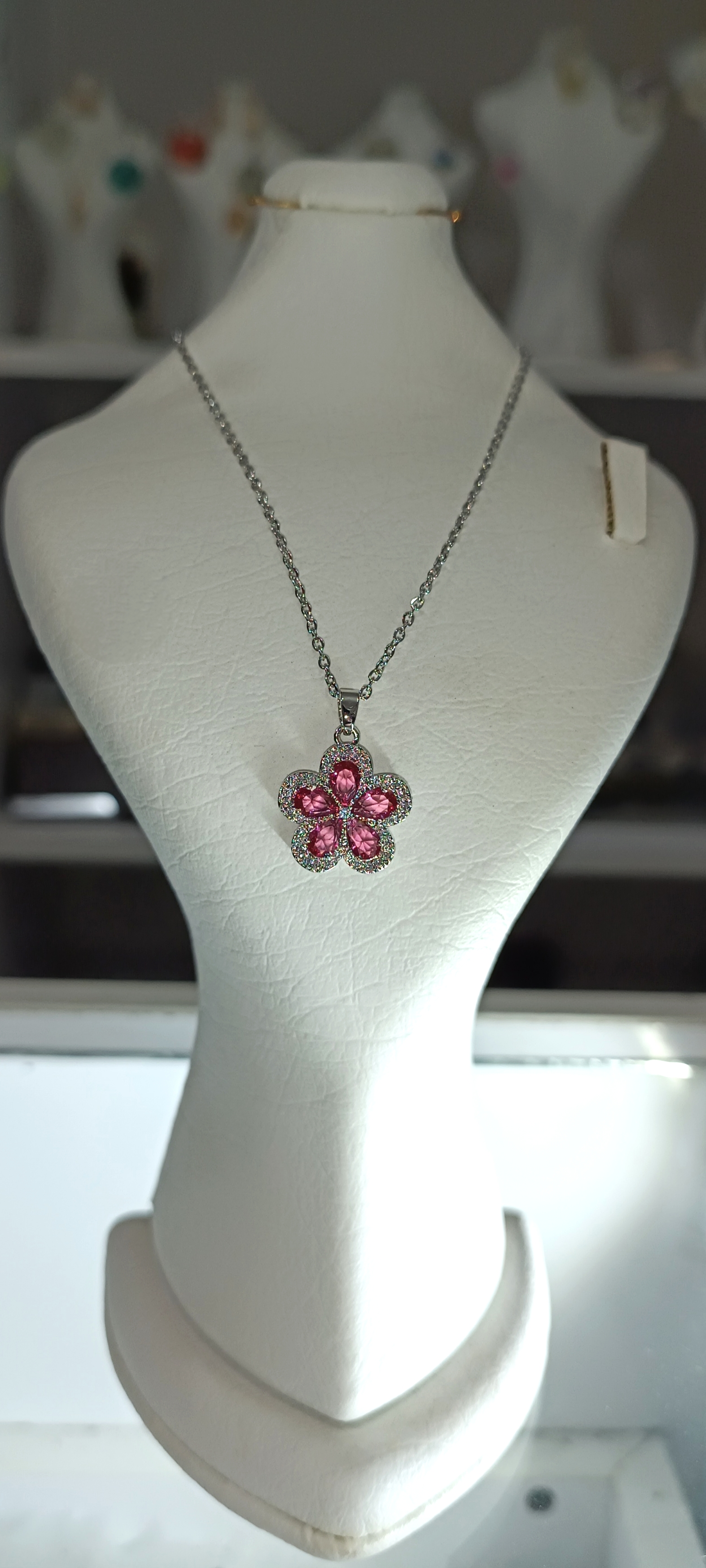 رنگ : زنجیر نقره ای + نگین گل سرخ